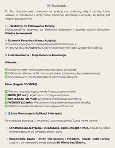E-book dostarcza kompletny plan, który buduje Twoją rutynę w dwóch etapach: Przygotowanie Wieczorne